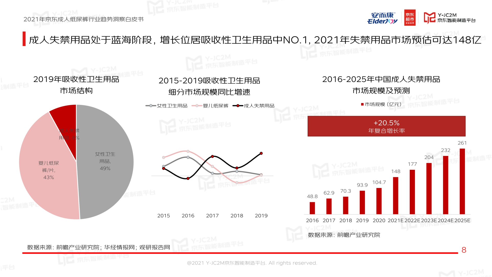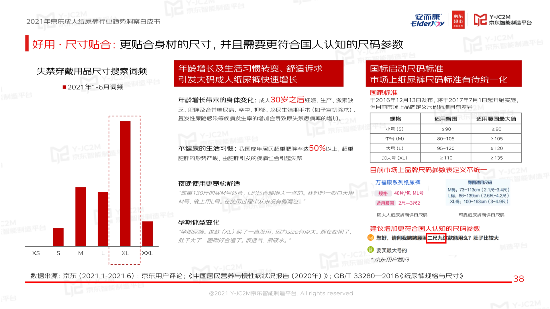 近日,彩神集团旗下成人纸尿裤品牌安而康联合京东智能制造平台共同发布《2021年京东成人纸尿裤行业趋势洞察白皮书》(下称《白皮书》),从行业概况、品牌格局、用户洞察、趋势展望四个维度,结合销量数据与消费者,深入剖析了随着我国步入老龄化社会以及消费观念不断升级,国内纸尿裤市场的全新变化与发展趋势。